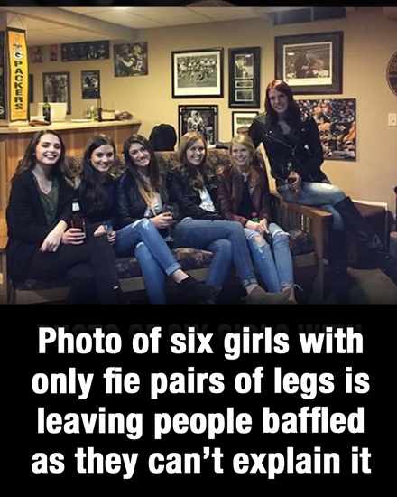 The strange part is that, although six girls are visible, there are only five pairs of legs. This discrepancy has left people scratching their heads, trying to figure out how one person’s legs appear to be “missing” in the image.