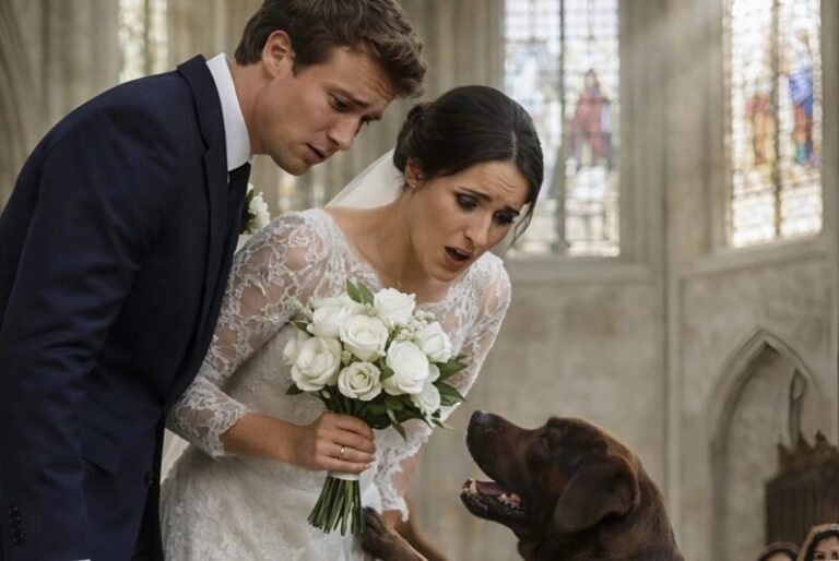 Suddenly, the dog grabbed the lower edge of the bride’s dress with its mouth and began pulling her backward, surprising everyone in the immediate area.