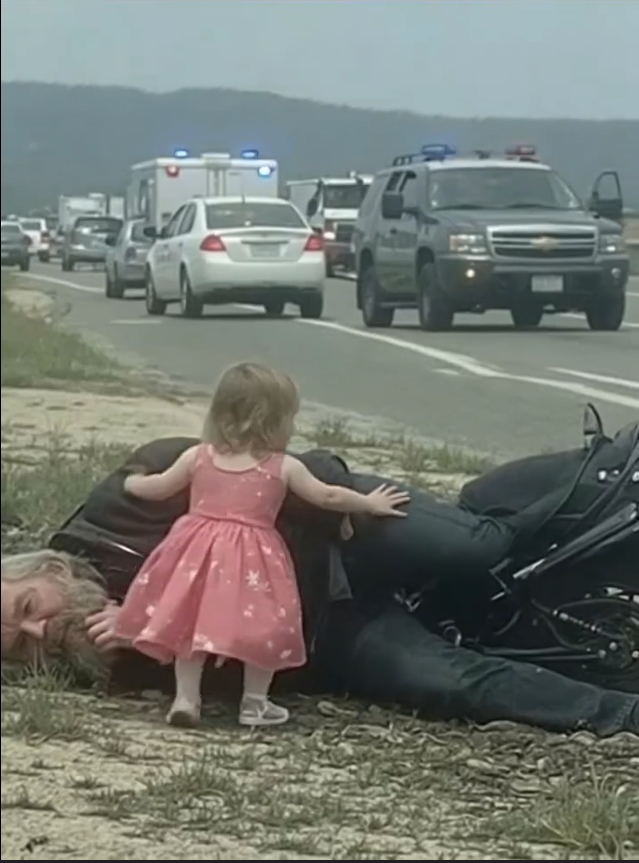Suddenly, Sophie’s voice cut sharply through the calm. “Mom! Stop the car! The motorcycle man is dying!” Her words carried a desperate urgency far beyond her five years, startling Helen, who instinctively glanced at her daughter in alarm.